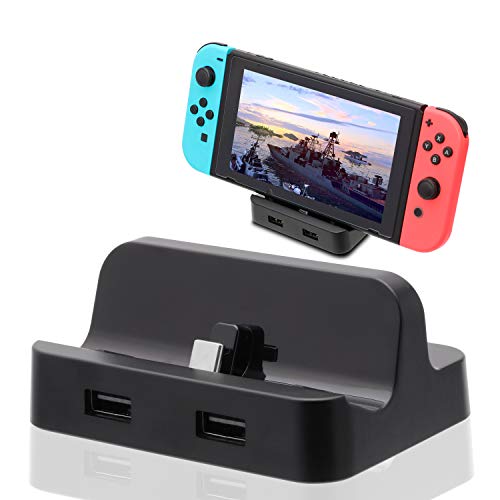 - PORTABLE DOCK FOR NINTENDO SWITCH - It can be as a stand for Switch and can be as a charger for Switch. The most special point is that it can charge your switch or switch lite with the case. You do not need to remove your protective case while charging.